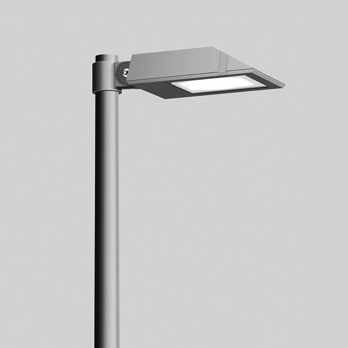BEGA Aufsatzleuchte 77928AK3. Asymmetrisch-bandförmige Lichtstärkeverteilung. Dark Sky: Kein Lichtstromanteil im oberen Halbraum. Lichtlenkung durch alterungsbeständiges, polymerfreies optisches System. BEGA Constant Optics® : Effizientes optisches System, das nahezu keinem Verschleiß unterliegt. LED, 18,7 W Leuchten-Anschlussleistung, Leuchten-Lichtstrom 2297 lm, Farbtemperatur 3000 K. Farbwiedergabeindex (CRI) > 80. Mit austauschbarem BEGA LED-Modul mit einer mittleren Bemessungslebensdauer von > 200.000 Betriebsstunden (L80B50 bei ta = 25 °C). 20-jährige Nachliefergarantie auf das LED-Modul und die Verschleißteile. Mit BEGA Ultimate Driver® LED-Netzteil, DALI-steuerbar, 220-240 V, 0/50-60 Hz. Schutzart IP 66. Leuchte aus Aluminiumguss, Aluminium und Edelstahl Beschichtungstechnologie BEGA Unidure® , Farbe Silber. Sicherheitsglas entspiegelt. Reflektor aus eloxiertem Reinstaluminium. Werkzeugloser Verschluss. Anstellwinkel in 10°-Stufen bis +90° einstellbar. Mit fest angeschlossener Anschlussleitung X05BQ-F 5 G 1 mm², Länge 6 m. Mastzopfdurchmesser 76 mm, Einstecktiefe 90 mm. Abmessungen: 290 x 110 x 650 mm. Für Lichtpunkthöhen von 4000 - 6000 mm.