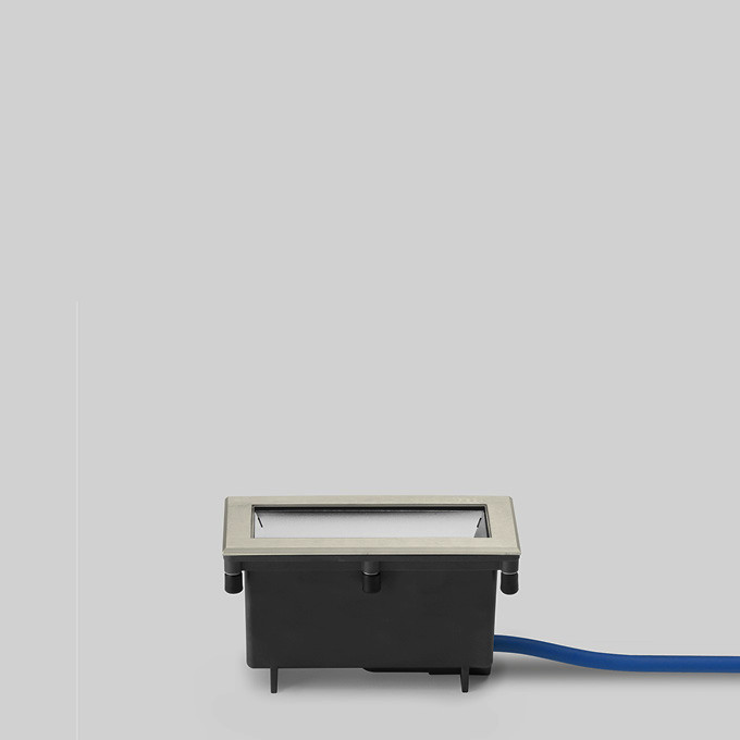 BEGA Bodeneinbauleuchte 84090K27, trittfest, für den Einsatz im privaten Bereich. Asymmetrische Lichtstärkeverteilung. LED, 4,7 W Leuchten-Anschlussleistung, Leuchten-Lichtstrom 513 lm, Halbstreuwinkel 60/100°, Farbtemperatur 2700 K. Farbwiedergabeindex (CRI) > 80. Mit austauschbarem BEGA LED-Modul mit Übertemperaturschutz und einer Lebenserwartung von mindestens 50.000 Betriebsstunden. 20-jährige Nachliefergarantie auf das LED-Modul und die Verschleißteile. Mit LED-Netzteil 220-240 V, 0/50-60 Hz. Schutzart IP 67. Leuchtengehäuse aus glasfaserverstärktem Kunststoff, Abdeckring aus Edelstahl. Sicherheitsglas klar. Reflektoroberfläche aus eloxiertem Reinstaluminium. Mit fest angeschlossener, wasserbeständiger Anschlussleitung 07RN8-F 3 G 1 qmm, Länge 1,8 m, mit eingebautem Wasserstopper und 1,2 m PVC-Installationsrohr. Abmessungen: 80 x 160 x 85 mm.