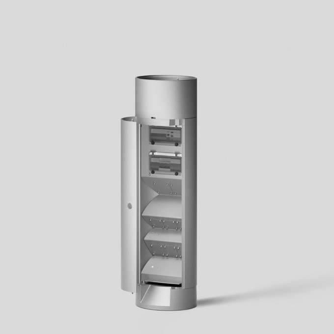 BEGA Pollerleuchtenrohr 84096A für BEGA Systempollerleuchten. Für die Verwendung im modularen LED-Pollerleuchtensystem. Mit abschließbarer Tür und BKS Sicherheitsschloss mit zwei Schlüsseln. Zur Aufnahme von Installationseinsätzen für die Stromversorgung. Das Pollerleuchtenrohr hat 2 Montageplätze für: CEE-Anbausteckdose 16 A · 415 V oder CEE-Anbausteckdose 32 A · 415 V nach DIN VDE 0623, EN 60309-2. 6 Montageplätze für: CEE-Anbausteckdose 16 A · 250 V nach DIN VDE 0623, EN 60309-2 oder Schutzkontaktsteckdose 16 A · 250 V nach DIN 49440-1. Anschlussklemme 5 polig, Klemmbereich bis 16 qmm. Aluminium, Farbe Silber. Mit Montageplatte zum Aufschrauben auf ein Fundament oder auf das Erdstück 70896. Abmessungen Ø 265 x 1150 mm.
