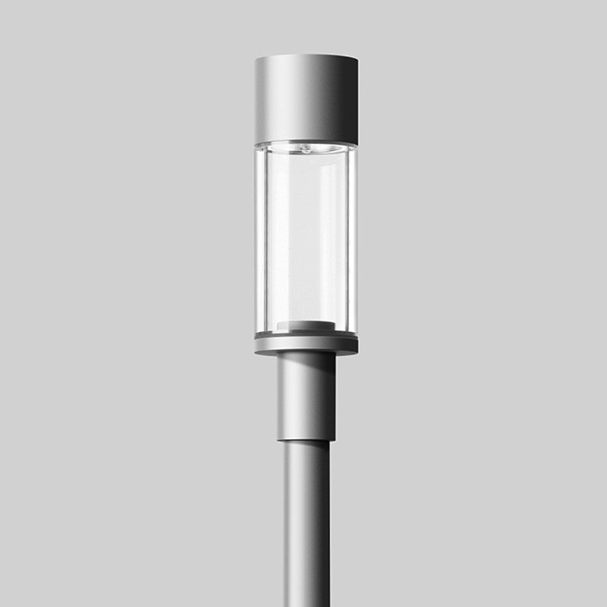 BEGA Aufsatzleuchte 84101AK4. Symmetrische Lichtstärkeverteilung. LED, 52 W Leuchten-Anschlussleistung, Leuchten-Lichtstrom 6459 lm, Farbtemperatur 4000 K. Farbwiedergabeindex (CRI) > 80. Mit austauschbarem BEGA LED-Modul mit Übertemperaturschutz und einer Lebenserwartung von mindestens 50.000 Betriebsstunden. 20-jährige Nachliefergarantie auf das LED-Modul und die Verschleißteile. Mit BEGA Ultimate Driver® LED-Netzteil, DALI-steuerbar, 220-240 V, 0/50-60 Hz. Schutzart IP 65. Leuchte aus Aluminiumguss, Aluminium und Edelstahl Beschichtungstechnologie BEGA Unidure® , Farbe Silber. Klarer Kunststoffzylinder. Reflektor aus eloxiertem Reinstaluminium. Mit fest angeschlossener Anschlussleitung X05BQ-F 5 G 1 mm², Länge 7 m. Mastzopfdurchmesser 76 mm, Einstecktiefe 110 mm. Für Lichtpunkthöhen von 5000 - 7000 mm.