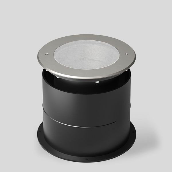 BEGA Bodeneinbauleuchte 84296RK3, überrollbar für Druckbelastung bis 5.000 kg (~50 kN). Rutschhemmendes Glas nach DIN 51130 R 13, mattiert. Symmetrische Lichtstärkeverteilung. LED, 50,8 W Leuchten-Anschlussleistung, Leuchten-Lichtstrom 4346 lm, Halbstreuwinkel 20°, Farbtemperatur 3000 K. Farbwiedergabeindex (CRI) > 80. Mit austauschbarem BEGA LED-Modul mit einer mittleren Bemessungslebensdauer von 95.000 Betriebsstunden (L80B50 bei ta = 25 °C). 20-jährige Nachliefergarantie auf das LED-Modul und die Verschleißteile. Mit BEGA Ultimate Driver® LED-Netzteil, DALI-steuerbar, 220-240 V, 0/50-60 Hz. Schutzart IP 68 10 m. Leuchten- und Einbaugehäuse aus hochkorrosionsfestem Aluminium. Beschichtungstechnologie BEGA Tricoat® Druckaufnahmering aus glasfaserverstärktem Kunststoff. Abdeckring aus Edelstahl, Werkstoff-Nr. 1.4301. BEGA Hybrid Optics® : Hocheffiziente und verlustarme Lichtverteilung durch Reflektor und optischer Linse. Reflektoroberfläche aus eloxiertem Reinstaluminium. 1,8 m wasserbeständige Anschlussleitung 07RN8-F 5 G 1 qmm mit eingebautem Wasserstopper und 1,2 m PVC-Installationsrohr. Leuchtendurchmesser 330 mm, Einbautiefe 250 mm. Einbauöffnung Ø 355 mm.