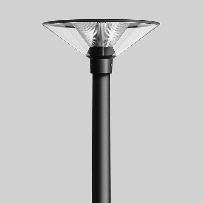 BEGA Aufsatzleuchte 84481K3. Symmetrische Lichtstärkeverteilung. LED, 27 W Leuchten-Anschlussleistung, Leuchten-Lichtstrom 3428 lm, Farbtemperatur 3000 K. Farbwiedergabeindex (CRI) > 80. Mit austauschbarem BEGA LED-Modul mit einer mittleren Bemessungslebensdauer von 185.000 Betriebsstunden (L80B50 bei ta = 25 °C). 20-jährige Nachliefergarantie auf das LED-Modul und die Verschleißteile. Mit BEGA Ultimate Driver® LED-Netzteil, DALI-steuerbar, 220-240 V, 0/50-60 Hz. Schutzart IP 65. Leuchte aus Aluminiumguss, Aluminium und Edelstahl Beschichtungstechnologie BEGA Unidure® , Farbe Grafit. Kunststoffabdeckung klar. Reflektoroberfläche Reinstaluminium. Mastzopfdurchmesser 76 mm, Einstecktiefe 60 mm. Mit fest angeschlossener Anschlussleitung X05BQ-F 5 G 1 mm², Länge 6 m. Für Lichtpunkthöhen von 4000 - 6000 mm.