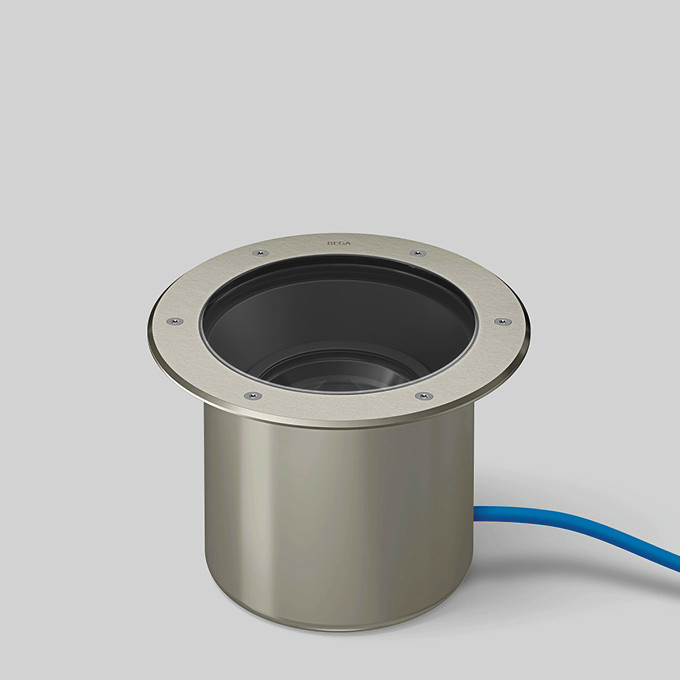 BEGA Bodeneinbauleuchte 84630K27, überrollbar für Druckbelastung bis 2.000 kg (~20 kN). Fokussiert-streuende Lichtstärkeverteilung mit minimalem Streulichtanteil. Innenliegendes Raster mit maximal lichtabsorbierender ultraschwarzer Lackierung und Polymerlinse. Optisches System 0-30° schwenkbar und um 360° stufenlos drehbar. LED, 21,5 W Leuchten-Anschlussleistung, Leuchten-Lichtstrom 1770 lm, Halbstreuwinkel 25°, Farbtemperatur 2700 K. Farbwiedergabeindex (CRI) > 80. Mit austauschbarem BEGA LED-Modul mit Übertemperaturschutz und einer Lebenserwartung von mindestens 50.000 Betriebsstunden. 20-jährige Nachliefergarantie auf das LED-Modul und die Verschleißteile. Mit LED-Netzteil, DALI-steuerbar, 220-240 V, 0/50-60 Hz. Schutzart IP 68 10 m. Leuchte aus Edelstahl, Werkstoff-Nr. 1.4301. Sicherheitsglas klar. 1,8 m wasserbeständige Anschlussleitung 07RN8-F 5 G 1 qmm mit eingebautem Wasserstopper und 1,2 m PVC-Installationsrohr. Leuchtendurchmesser 280 mm, Einbautiefe 185 mm.