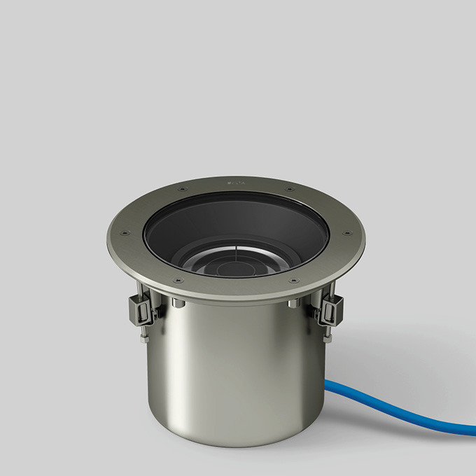 BEGA Bodeneinbauleuchte 84788K27 für den Einbau in runde Ausschnitte, überrollbar für Druckbelastung bis 2.000 kg (~20 kN). BEGA Hybrid Optics® : Hocheffiziente und verlustarme Lichtverteilung durch Reflektor und optischer Linse. Mit symmetrisch-fokussierter Lichtstärkeverteilung und reduziertem Streulichtanteil. Optisches System 0-30° schwenkbar und um 360° stufenlos drehbar. LED, 28 W Leuchten-Anschlussleistung, Leuchten-Lichtstrom 1507 lm, Halbstreuwinkel 8°, Farbtemperatur 2700 K. Farbwiedergabeindex (CRI) > 80. Mit austauschbarem BEGA LED-Modul mit einer mittleren Bemessungslebensdauer von 70.000 Betriebsstunden (L80B50 bei ta = 25 °C). 20-jährige Nachliefergarantie auf das LED-Modul und die Verschleißteile. Mit BEGA Ultimate Driver® LED-Netzteil, DALI-steuerbar, 220-240 V, 0/50-60 Hz. Schutzart IP 68 10 m. Leuchte aus Edelstahl, Werkstoff-Nr. 1.4301. Sicherheitsglas klar. Reflektoroberfläche aus eloxiertem Reinstaluminium. Innenliegendes Raster aus glasfaserverstärktem Kunststoff. Optische Silikonlinse. 1,8 m wasserbeständige Anschlussleitung 07RN8-F 5 G 1 qmm mit eingebautem Wasserstopper und 1,2 m PVC-Installationsrohr. Leuchtendurchmesser 280 mm, Einbautiefe 185 mm. Einbauöffnung Ø 257 mm.