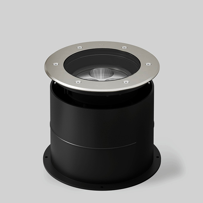 BEGA Bodeneinbauleuchte 84882, überrollbar für Druckbelastung bis 5.000 kg (~50 kN) mit einstellbarer Lichtstärkeverteilung für additive Farbmischung RGBW. Optisches System 0-25° schwenkbar und um 360° stufenlos drehbar. Breitstreuende Lichtstärkeverteilung. BEGA Constant Optics® : Effizientes optisches System, das nahezu keinem Verschleiß unterliegt. LED, 38,6 W Leuchten-Anschlussleistung, für additive Farbmischung RGBW, Halbstreuwinkel 52°. Mit austauschbarem BEGA LED-Modul mit einer mittleren Bemessungslebensdauer von > 200.000 Betriebsstunden (L80B50 bei ta = 25 °C). 20-jährige Nachliefergarantie auf das LED-Modul und die Verschleißteile. Mit BEGA Ultimate Driver® LED-Netzteil, DALI-steuerbar (DT8, RGBWAF, xy, TC) , 220-240 V, 0/50-60 Hz. Schutzart IP 68 10 m. Leuchten- und Einbaugehäuse aus hochkorrosionsfestem Aluminium. Beschichtungstechnologie BEGA Tricoat® Druckaufnahmering aus glasfaserverstärktem Kunststoff. Abdeckring aus Edelstahl, Werkstoff-Nr. 1.4301. Sicherheitsglas klar. Reflektoroberfläche aus eloxiertem Reinstaluminium. 1,8 m wasserbeständige Anschlussleitung 07RN8-F 5 G 1 qmm mit eingebautem Wasserstopper und 1,2 m PVC-Installationsrohr. Leuchtendurchmesser 330 mm, Einbautiefe 250 mm. Einbauöffnung Ø 355 mm.