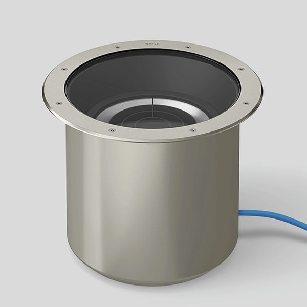 BEGA Bodeneinbauleuchte 84891K3, überrollbar für Druckbelastung bis 2.000 kg (~20 kN). BEGA Hybrid Optics® : Hocheffiziente und verlustarme Lichtverteilung durch Reflektor und optischer Linse. Mit symmetrisch-fokussierter Lichtstärkeverteilung und reduziertem Streulichtanteil. Optisches System 0-30° schwenkbar und um 360° stufenlos drehbar. LED, 78 W Leuchten-Anschlussleistung, Leuchten-Lichtstrom 4244 lm, Halbstreuwinkel 10°, Farbtemperatur 3000 K. Farbwiedergabeindex (CRI) > 80. Mit austauschbarem BEGA LED-Modul mit einer mittleren Bemessungslebensdauer von 75.000 Betriebsstunden (L80B50 bei ta = 25 °C). 20-jährige Nachliefergarantie auf das LED-Modul und die Verschleißteile. Mit BEGA Ultimate Driver® LED-Netzteil, DALI-steuerbar, 220-240 V, 0/50-60 Hz. Schutzart IP 68 10 m. Leuchte aus Edelstahl, Werkstoff-Nr. 1.4301. Sicherheitsglas klar. Reflektor aus eloxiertem Reinstaluminium. Innenliegendes Raster aus glasfaserverstärktem Kunststoff. Optische Silikonlinse. 1,8 m wasserbeständige Anschlussleitung 07RN8-F 5 G 1 qmm mit eingebautem Wasserstopper und 1,2 m PVC-Installationsrohr. Leuchtendurchmesser 410 mm, Einbautiefe 310 mm.