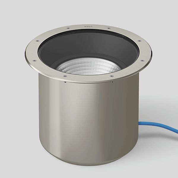 BEGA Bodeneinbauleuchte 84892K3, überrollbar für Druckbelastung bis 2.000 kg (~20 kN). BEGA Hybrid Optics® : Hocheffiziente und verlustarme Lichtverteilung durch Reflektor und optischer Linse. Rotationssymmetrisch streuende Lichtstärkeverteilung. Optisches System 0-30° schwenkbar und um 360° stufenlos drehbar. LED, 76 W Leuchten-Anschlussleistung, Leuchten-Lichtstrom 7439 lm, Halbstreuwinkel 27°, Farbtemperatur 3000 K. Farbwiedergabeindex (CRI) > 80. Mit austauschbarem BEGA LED-Modul mit einer mittleren Bemessungslebensdauer von 85.000 Betriebsstunden (L80B50 bei ta = 25 °C). 20-jährige Nachliefergarantie auf das LED-Modul und die Verschleißteile. Mit BEGA Ultimate Driver® LED-Netzteil, DALI-steuerbar, 220-240 V, 0/50-60 Hz. Schutzart IP 68 10 m. Leuchte aus Edelstahl, Werkstoff-Nr. 1.4301. Sicherheitsglas klar. Reflektor aus eloxiertem Reinstaluminium. Optische Silikonlinse. 1,8 m wasserbeständige Anschlussleitung 07RN8-F 5 G 1 qmm mit eingebautem Wasserstopper und 1,2 m PVC-Installationsrohr. Leuchtendurchmesser 410 mm, Einbautiefe 310 mm.
