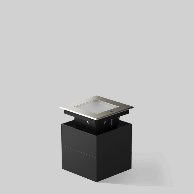 BEGA Bodeneinbauleuchte 84910R für additive Farbmischung RGBW, überrollbar für Druckbelastung bis 5.000 kg (~50 kN). Rutschhemmendes Glas nach DIN 51130 R 13, mattiert. Orientierungsleuchte. Die Leuchte kann über eine DALI-Farblichtsteuerung (DT 8, RGBWAF, xy) gesteuert werden. LED, 12 W Leuchten-Anschlussleistung, für additive Farbmischung RGBW. Mit austauschbarem BEGA LED-Modul mit Übertemperaturschutz und einer Lebenserwartung von mindestens 50.000 Betriebsstunden. 20-jährige Nachliefergarantie auf das LED-Modul und die Verschleißteile. Mit BEGA Ultimate Driver® LED-Netzteil, DALI-steuerbar (DT8, RGBWAF, xy), 220-240 V, 0/50-60 Hz. Schutzart IP 68 10 m. Leuchten- und Einbaugehäuse aus hochkorrosionsfestem Aluminium. Beschichtungstechnologie BEGA Tricoat® Druckaufnahmerahmen aus glasfaserverstärktem Kunststoff. Abdeckrahmen aus Edelstahl, Werkstoff-Nummer 1.4301. 1,8 m wasserbeständige Anschlussleitung 07RN8-F 5 G 1 qmm mit eingebautem Wasserstopper und 1,2 m PVC-Installationsrohr. Abmessungen: 180 x 180 mm. Einbautiefe: 170 mm, Einbauöffnung: 180 x 180 mm.