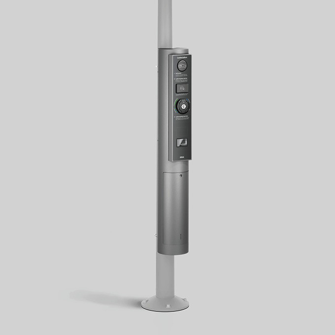 BEGA Ladeeinheit 85097A zur Montage an vorhandene Lichtmaste. Besonders robuste Ausführung für den öffentlichen und halböffenlichen Bereich. 2 Befestigungsbügel aus Edelstahl, Werkstoff-Nummer 1.4401, passend für Maste von ø 115 bis 135 mm. Intergrierte Ladeeinheit mit Anschlussleitung H07RN-F 5 G 6 qmm, Leitungslänge 2 m, Ethernet-Datenkabel Cat 6A mit Stecker RJ45. Integrierte DC-Fehlerstromerkennung 6 mA. Absicherung, Überspannungsschutz und RCD-Schutzschalter sind bauseits vorzusehen. Spannung 230 / 400 V AC, 50 Hz (1- oder 3-phasig), Stromstärke 16 / 32 A, Lastschütz 4-polig, 40 A. Steuersicherung 1-polig, B6. Steckdose Typ 2 nach EN 62196 mit integrierter Statusbeleuchtung, Ladeleistung 3,7 ? 22 kW. MID-konformer Energiezähler (kWh), Eichrechtskonform gemäß MessEV. Integration in Last- und Lademenagement möglich. Autorisierung über RFID-Kartenleser. Aluminiumguss, Aluminium und Edelstahl Beschichtungstechnologie BEGA Unidure® , Farbe Silber. Mit Tür und eingebautem Anschlusskasten 71084. Zur Durchverdrahtung für 2 Kabel bis 7 x 6 qmm mit Feinsicherung 6,3 A. C-Schiene mit 2 Schiebemuttern M6 zur Aufnahme eines bauseitigen Anschlusskasten nach DIN 43628 / VDE 0660 zum Anschluss der Ladeeinheit. Abmessungen Ø 220 x Höhe 1420 mm.