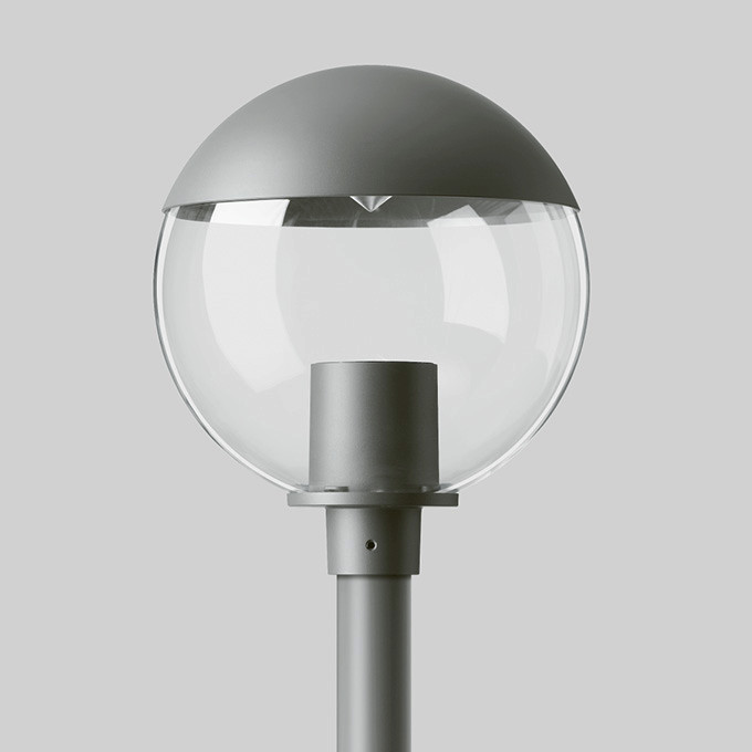 BEGA Abgeblendete Aufsatzleuchte 85221AK4. Symmetrische Lichtstärkeverteilung. Dark Sky: Lichtstromanteil im oberen Halbraum < 1%. LED, 41 W Leuchten-Anschlussleistung, Leuchten-Lichtstrom 2820 lm, Farbtemperatur 4000 K. Farbwiedergabeindex (CRI) > 80. Mit austauschbarem BEGA LED-Modul mit einer mittleren Bemessungslebensdauer von > 50.000 Betriebsstunden (L80B50 bei ta = 25 °C). 20-jährige Nachliefergarantie auf das LED-Modul und die Verschleißteile. Mit BEGA Ultimate Driver® LED-Netzteil, DALI-steuerbar, 220-240 V, 0/50-60 Hz. Schutzart IP 65, Schutzklasse II. Leuchte aus Aluminiumguss, Aluminium und Edelstahl Beschichtungstechnologie BEGA Unidure® , Farbe Silber. Klare schlagfeste Kunststoffkugel. Reflektor aus eloxiertem Reinstaluminium. Kugeldurchmesser Ø 450 mm. Mastzopfdurchmesser 76 mm, Einstecktiefe 60 mm. Für Lichtpunkthöhen von 3500 - 6000 mm.