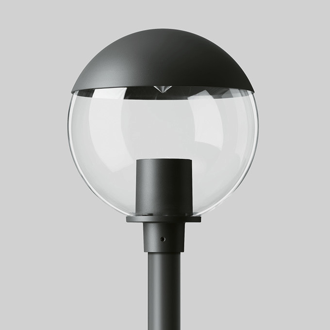 BEGA Abgeblendete Aufsatzleuchte 85221K3. Symmetrische Lichtstärkeverteilung. Dark Sky: Lichtstromanteil im oberen Halbraum < 1%. LED, 41 W Leuchten-Anschlussleistung, Leuchten-Lichtstrom 2750 lm, Farbtemperatur 3000 K. Farbwiedergabeindex (CRI) > 80. Mit austauschbarem BEGA LED-Modul mit einer mittleren Bemessungslebensdauer von > 50.000 Betriebsstunden (L80B50 bei ta = 25 °C). 20-jährige Nachliefergarantie auf das LED-Modul und die Verschleißteile. Mit BEGA Ultimate Driver® LED-Netzteil, DALI-steuerbar, 220-240 V, 0/50-60 Hz. Schutzart IP 65, Schutzklasse II. Leuchte aus Aluminiumguss, Aluminium und Edelstahl Beschichtungstechnologie BEGA Unidure® , Farbe Grafit. Klare schlagfeste Kunststoffkugel. Reflektor aus eloxiertem Reinstaluminium. Kugeldurchmesser Ø 450 mm. Mastzopfdurchmesser 76 mm, Einstecktiefe 60 mm. Für Lichtpunkthöhen von 3500 - 6000 mm.