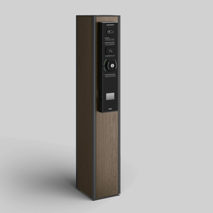 BEGA Ladesäule 95020MO mit zwei eingebauten Ladeeinheiten zum Aufschrauben auf ein Fundament oder Erdstück in besonders robuster Ausführung für den halböffenlichen Bereich. Rahmen aus stranggepresstem Aluminiumprofil, pulverbeschichtet und lackiert, Farbe grafit. Seitenteile und Kopfplatte bestehen aus UV-resistentem und wasserfestem Hochdrucklaminat. Dekor Marshland Oak. Mit Montageplatte zum Aufschrauben auf ein Fundament oder auf das Erdstück 70897. Intergrierte Ladeeinheit mit Anschlussleitung H07RN-F 5 G 6 qmm, Leitungslänge 2 m, Ethernet-Datenkabel Cat 6A mit Stecker RJ45. Integrierte DC-Fehlerstromerkennung 6 mA. Absicherung, Überspannungsschutz und RCD-Schutzschalter sind bauseits vorzusehen. Spannung 230 / 400 V AC, 50 Hz (1- oder 3-phasig), Stromstärke 16 / 32 A, Lastschütz 4-polig, 40 A. Steuersicherung 1-polig, B6. Steckdose Typ 2 nach EN 62196 mit integrierter Statusbeleuchtung, Ladeleistung 3,7 ? 22 kW. MID-konformer Energiezähler (kWh), Eichrechtskonform gemäß MessEV. Integration in Last- und Lademenagement möglich. Autorisierung über RFID-Kartenleser. 2 C-Schienen mit Schiebemuttern M6 zur Aufnahme eines bauseitigen Anschlusskasten nach DIN 43628 / VDE 0660 zum Anschluss der beiden Ladeeinheiten. Schutzart IP 65 Staubdicht und Schutz gegen Strahlwasser. Steckdose (mit geschlossenem Klappdeckel) Schutzart IP 54. Abmessungen: 270 x 415 mm. Höhe über Flur 1505 mm.