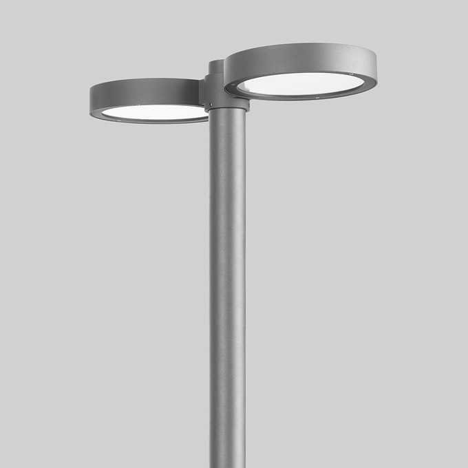 BEGA Aufsatzleuchte 99462AK3 in 2-fach-Anordnung. Asymmetrisch-bandförmige Lichtstärkeverteilung. Dark Sky: Kein Lichtstromanteil im oberen Halbraum. Lichtlenkung durch alterungsbeständiges, polymerfreies optisches System. LED 18,3 W Leuchten-Anschlussleistung, Leuchten-Lichtstrom 1942 lm, Farbtemperatur 3000 K. Farbwiedergabeindex (CRI) > 80 je Leuchtenkörper. Mit austauschbaren BEGA LED-Modulen mit Übertemperaturschutz und einer Lebenserwartung von mindestens 50.000 Betriebsstunden. 20-jährige Nachliefergarantie auf LED-Module und Verschleißteile. Mit BEGA Ultimate Driver® LED-Netzteil, DALI-steuerbar, 220-240 V, 0/50-60 Hz. Schutzart IP 65, Schutzklasse II. Leuchte aus Aluminiumguss, Aluminium und Edelstahl Beschichtungstechnologie BEGA Unidure® , Farbe Silber. Sicherheitsglas mit optischer Struktur. Reflektor aus eloxiertem Reinstaluminium. Anstellwinkel einstellbar auf 0° oder 15°. Mit fest angeschlossener Anschlussleitung ÖLFLEX 4 x 1 qmm, Länge 5 m. Mastzopfdurchmesser 76 mm, Einstecktiefe 50 mm. Für Lichtpunkthöhen von 4000 - 5000 mm. Abmessungen: 300 x 100 x 720 mm.