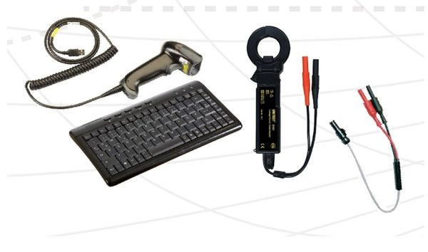 GT-900 ZUBEHÖRSATZ mit BC-1250G Barcode-Scanner, KBGE-MT204S USB-Tastatur, CHB1 1311D Leckstromzangenadapter (AC), und ACF-6A Adapterkabel