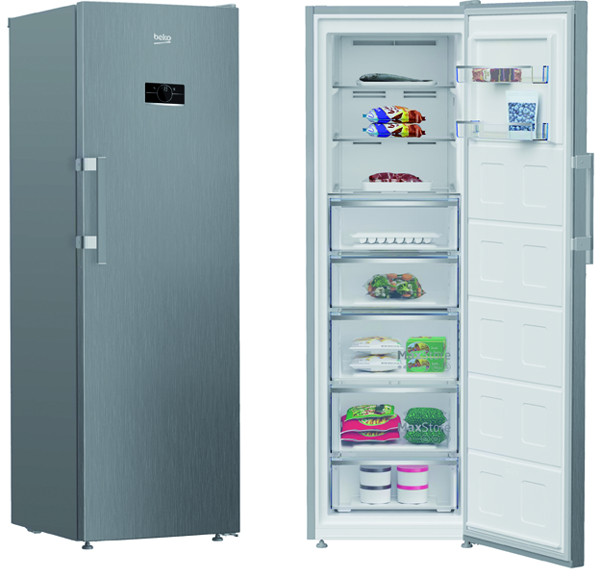elektronische Temperatursteuerung mit LCD-Display außen in der Tür, Schnellgefrieren, Türalarm, No Frost, 3 offene Gefrierfächer und 5 Gefriergutschubladen mit transparenter Front, Türanschlag rechts, wechselbar, in unbeheizten Räumen nutzbar, ProSmart™ Inverter Kompressor