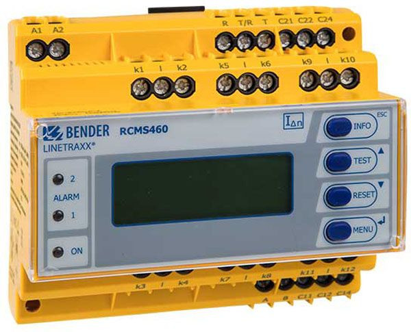 Das Differenzstrom-Überwachungssystem (RCMS-System) besteht aus einem oder mehreren Differenzstrom-Überwachungsgeräten RCMS460-D/-L oder RCMS490-D/-L, die über die dazugehörigen Messstromwandler Fehler-, Differenz- und Betriebsströme in geerdeten Stromversorgungen erfassen und auswerten können. Die maximale Spannung des überwachten Netzes ist von der Nennisolationsspannung der eingesetzten Messstromwandler bei Stromschienensystemen bzw. der durchgeführten Kabel oder Leitungen abhängig. Für eine allstromsensitive Messwerterfassung (nach IEC/TR 60755: Typ B) sind die geschlossenen Messstromwandler der Serie W…AB erforderlich. Für jeweils 6 Messstromwandler der Serie W…AB wird ein Netzgerät AN420 oder AN110 benötigt. Für Wechsel- und Pulsströme (nach IEC/TR 60755: Typ A) werden die Messstromwandler der Serien W… (geschlossen), WR… (rechteckig), WS… (teilbar) und WF… (flexibel) eingesetzt. Die verschiedenen Messstromwandler können in beliebiger Kombination an die Messkanäle der Überwachungsgeräte angeschlossen werden. Jedes RCMS460-D/-L und RCMS490-D/-L verfügt über 12 Messkanäle. Insgesamt können bis zu 90 Differenzstrom-Überwachungsgeräte über BMS-Bus (RS-485-Schnittstelle mit BMS-Protokoll) verbunden und so bis zu 1080 Messkanäle (Abgänge) überwacht werden. Für die Anwendung im Personen-, Brand- und Anlagenschutz kann das Frequenzverhalten entsprechend eingestellt werden. Die gemessenen Ströme können auf harmonische Oberschwingungen analysiert werden.