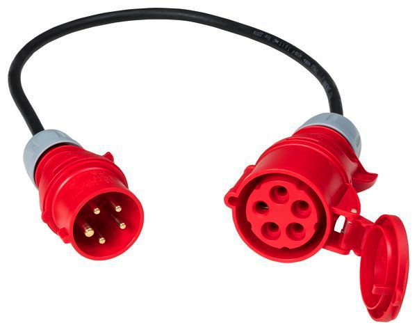 Netzanschlusskabel CEE-Stecker (16 A, 400 V, 5-polig) auf CEE-Kupplung (32 A, 400 V, 5-polig), 1 m Länge