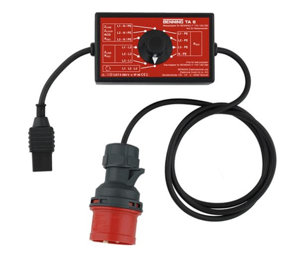 Benning TA 6. Messadapter 16 A CEE 5-polig. Zur Messung von Isolation, Schleifen-/ Leitungsimpedanz, RCD-Prüfung, Spannung, Phasenfolge/ Drehfeld. 16 A CEE-Kupplung 5-polig. Länge der Prüfleitung: 1,5 m.