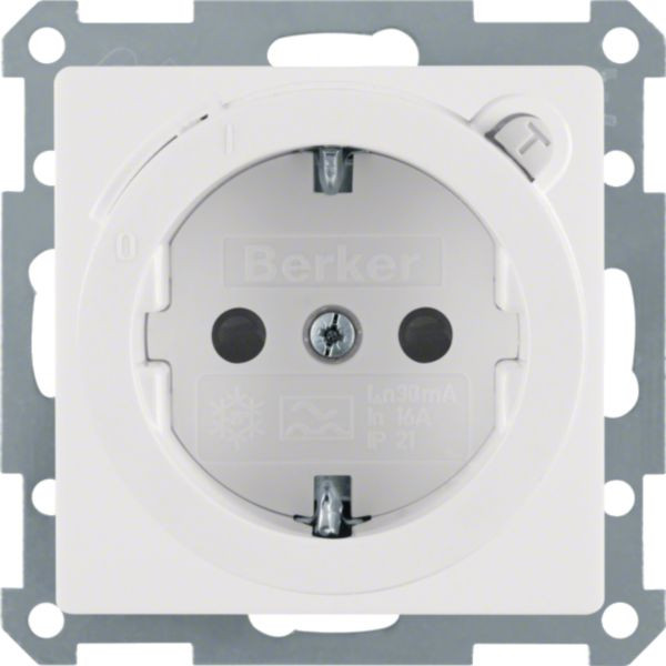 Steckdose SCHUKO mit FI-Schutzschalter u. erh.BS Q.x polarweiß, samt