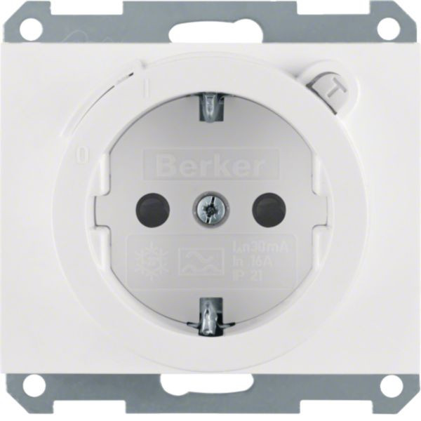 Steckdose SCHUKO mit FI-Schutzschalter u. erh.BS K.1 polarweiß, glänzend