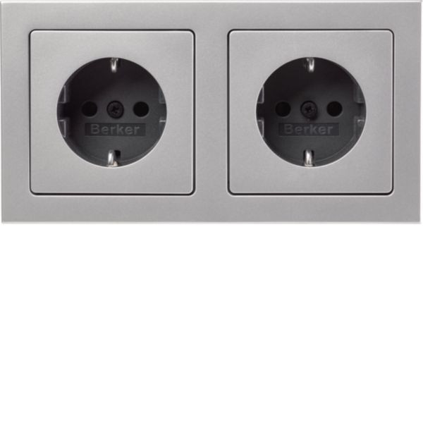 Steckdosen-Kombination SCHUKO 2fach mit Rahmen Q.3 alu samt, lackiert