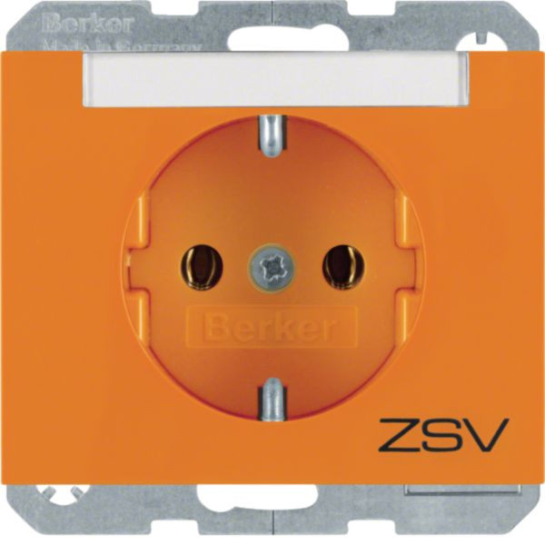 Steckdose SCHUKO mit Beschriftungsfeld und Aufdruck K.1/K.5 orange, glänzend