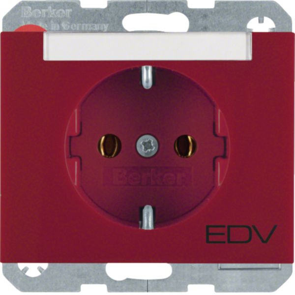 Steckdose SCHUKO mit Beschriftungsfeld und Aufdruck K.1/K.5 rot, glänzend