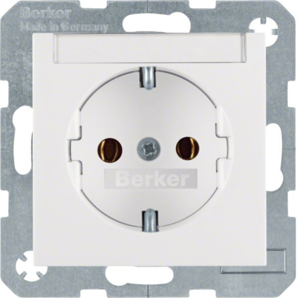 Die SCHUKO® Steckdose mit Beschriftungsfeld aus der Serie Berker S.1/B.3/B.7 in polarweiß, glänzend, bietet eine Unterputz-Installation und ist mit Steckklemmen nach VDE 0620 ausgestattet. Das Material besteht aus halogenfreiem Duroplast. Der integrierte, einteilige Erdungsbügel erhöht die Sicherheit. Ideal für Standard-, Flächen- und Designprogramme.