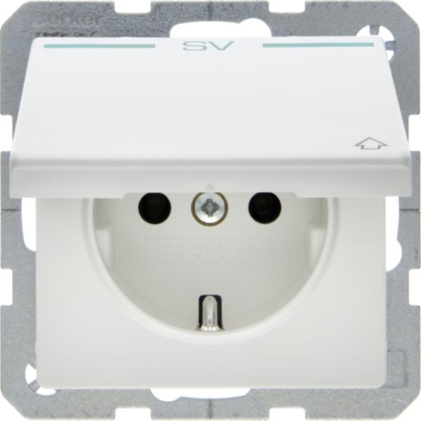 Steckdose SCHUKO mit Klappdeckel u. Aufdruck SV grün, Q.x polarweiß samt