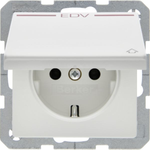 Steckdose SCHUKO mit Klappdeckel u. Aufdruck EDV rot, Q.x polarweiß samt