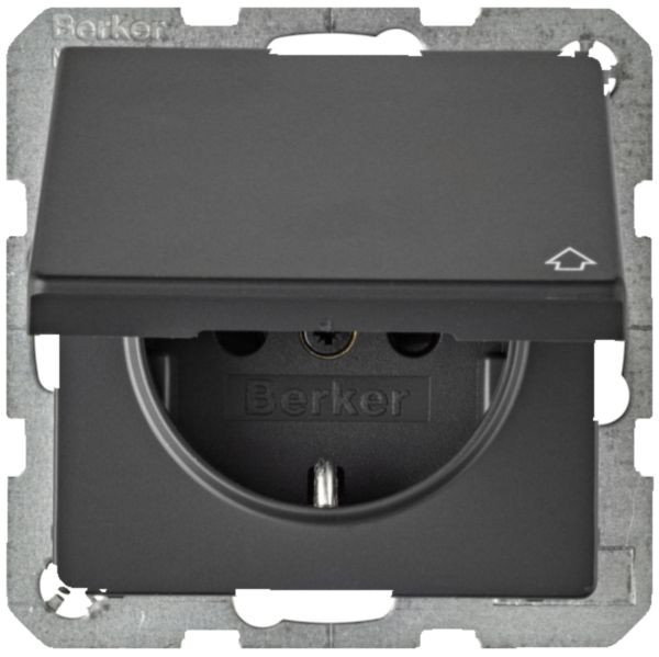 Steckdose SCHUKO mit Klappdeckel u. erh.BS Q.x anthrazit, samt