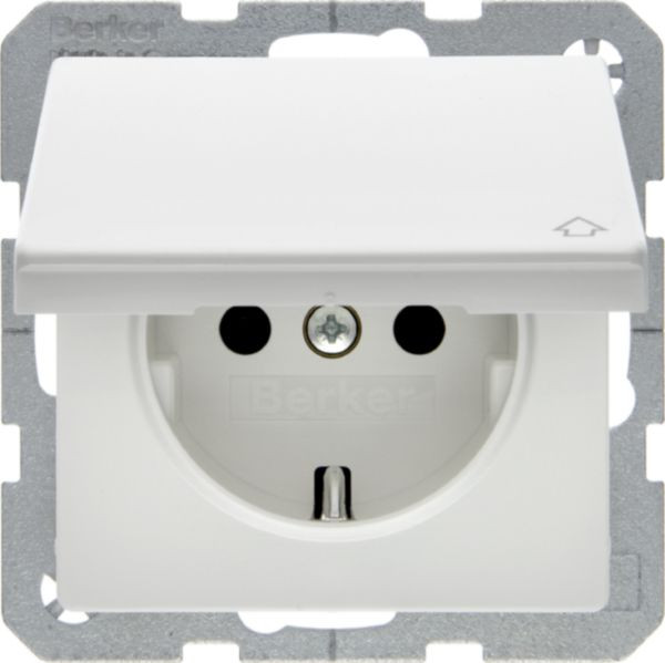 Steckdose SCHUKO mit Klappdeckel u. erh.BS Q.x polarweiß samt