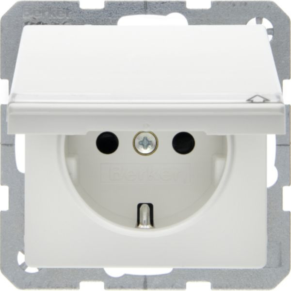 Steckdose SCHUKO mit Klappdeckel, BSF u. erh.BS Q.x polarweiß samt