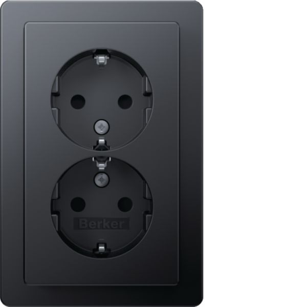 Doppelsteckdose SCHUKO mit Abdeckplatte, hoch, erh. Ber.schutz, Q.1, anthr. samt