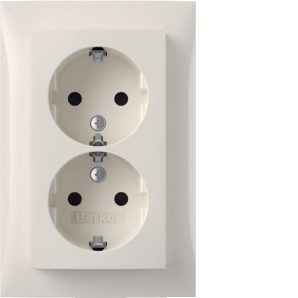 Doppelsteckdose SCHUKO, Abdeckpl., erh.BS, Berker S.1, polarweiß glänzend