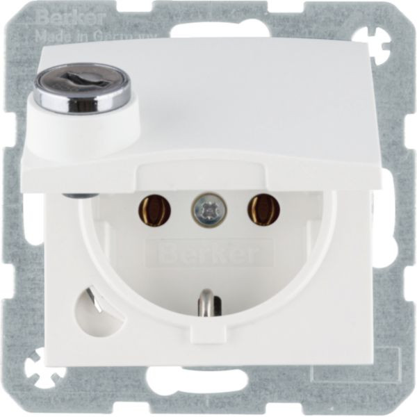 SCHUKO Steckdose m. Steckklemme,Klappd.,Schloss, S.1,polarweiß matt