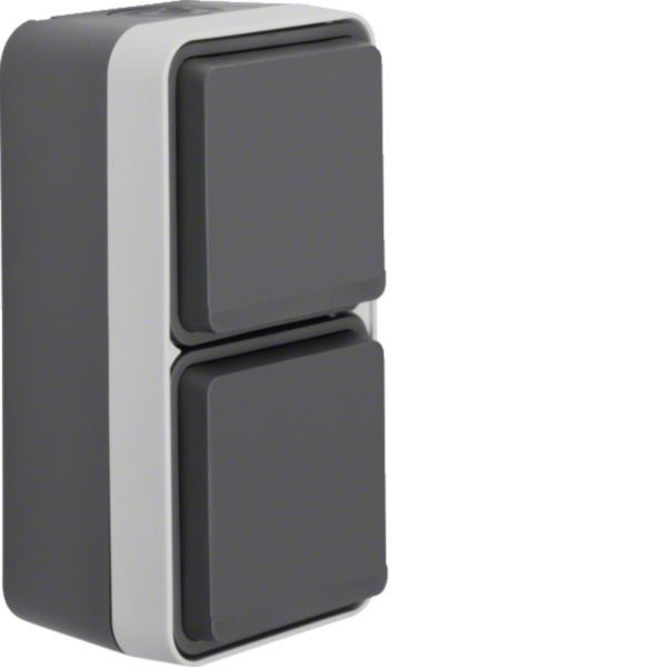 | Kurzbeschreibung | Aufputzsteckdose SCHUKO 2-fach senkrecht, Klappdeckel, W.1, grau/lichtgrau matt |