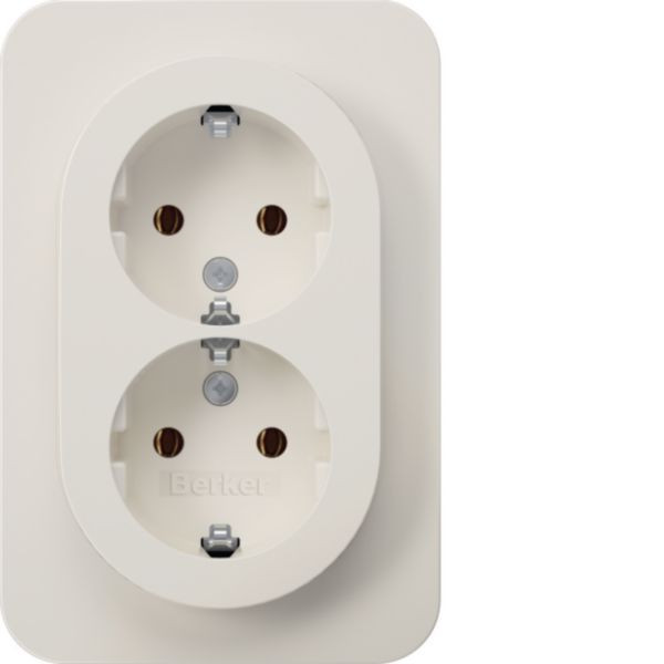 Doppelsteckdose SCHUKO mit Abdeckplatte, Berker R.1, polarweiß glänzend