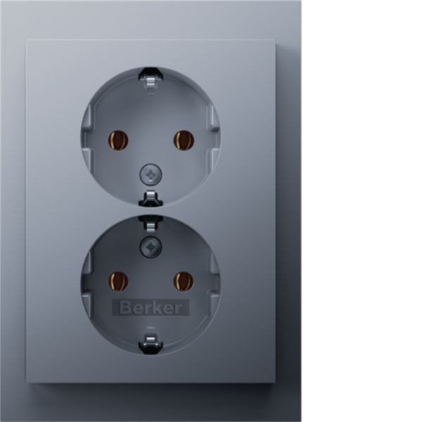 Doppelsteckdose SCHUKO mit Abdeckplatte, Berker K.5, alu matt, lackiert