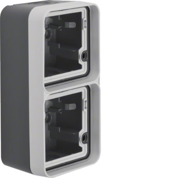 | Kurzbeschreibung | Gehäuseunterteil 2-fach senkrecht mit Rahmen und Leitungseinführung AP W.1 grau |