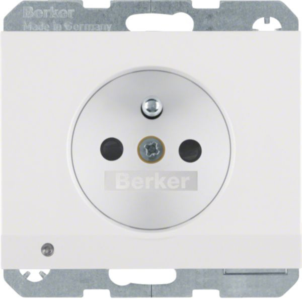 Steckdose m. Schutzko.-Stift u. LED-Orientierungslicht K.1 polarweiß, glänzend