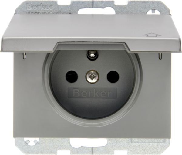 Steckdose mit Schutzkontaktstift und Klappdeckel K.5 Edelstahl Rostfrei