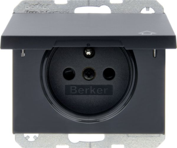 Steckdose mit Schutzkontaktstift, Klappdeckel und erh.BS K.1 anthrazit, matt