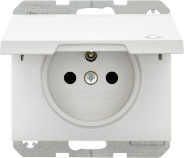 Steckdose mit Schutzkontaktstift und Klappdeckel K.1 polarweiß glänzend