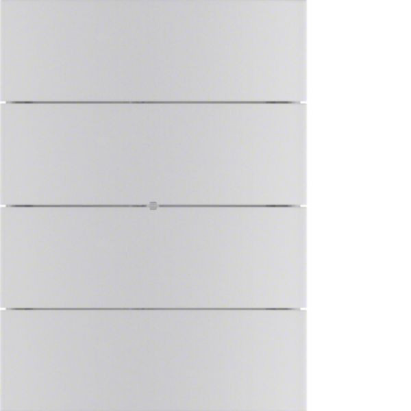 für Busankoppler UP, mit Temperaturregler; zur Installation in einfachen Einbaudosen; rahmenloses Design; mit Demontageschutz; mit blauer Betriebs-LED und weißen Status-LEDs (Beschriftungsfeld-Beleuchtung); LC-Display mit Symboldarstellung, Textanzeige und Beleuchtung; mit 2 zusätzlichen Display-Funktionstasten; Ein- und Zweiflächenbedienung parametrierbar; mit Raumtemperaturschaltuhr- und 2 Wochenschaltuhrfunktionen; für individuelle Einzelraumregelung, für stetige (PI-) oder schaltende (2-Punkt-) Regelung von max. 2 Regelkreisen. Tastsensor 4fach Komfort B.IQ Alu