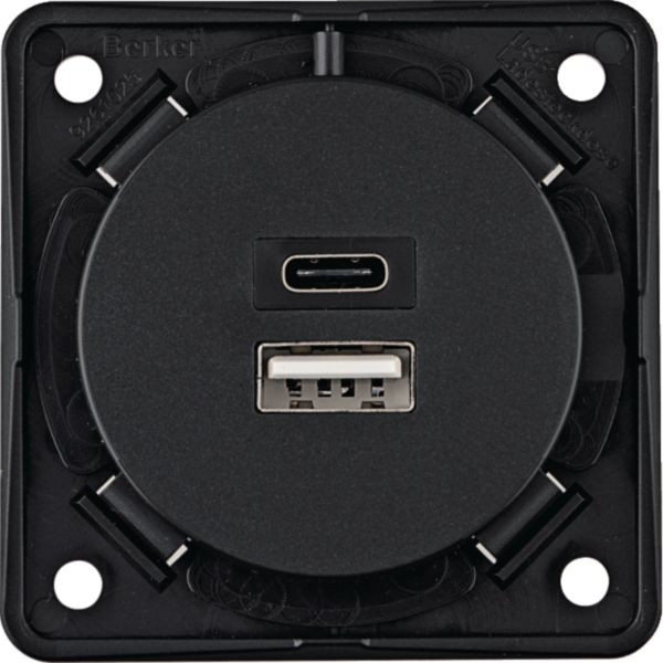 | Kurzbeschreibung | Berker USB Ladesteckdose, Ladedose 230 V, 2fach, 3A, A+C, Integro, anthrazit |