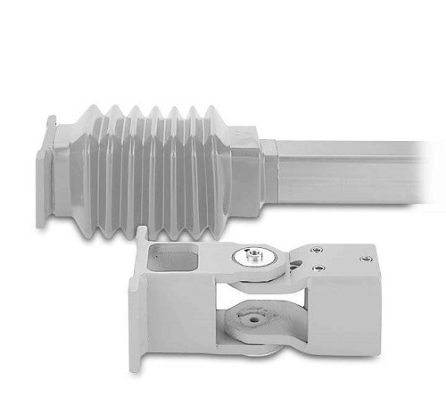 Mit Reißverschluss anzubringender Faltenbalg. Schwenkwinkel 180° mit beidseitigem Anschlag. Drehmomenteinstellung.