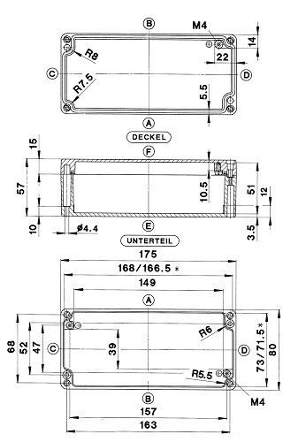 | Kurzbeschreibung | Aluminium Gehäuse Typ CA-180, ungewaschen, unlackiert, Zubehör lose, Außenmaß: 175 x 80 x 57 mm |