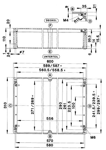 | Kurzbeschreibung | Aluminium Gehäuse Typ CA-470, ungewaschen, unlackiert, Zubehör lose, Außenmaß: 600 x 310 x 110 mm |