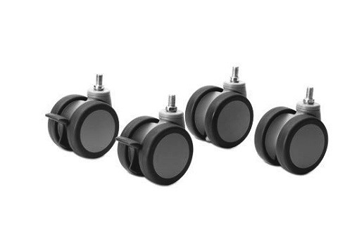 Rollen-Set bestehend aus 4 Lenkrollen, davon 2 Rollen mit Totalfeststellung, Traglast je Rolle 70 kg, Bauhöhe 90 mm, Rollendurchmesser 75 mm